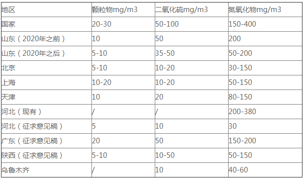 我國已出臺的部分地區(qū)燃?xì)忮仩t排放標(biāo)準(zhǔn)匯總
